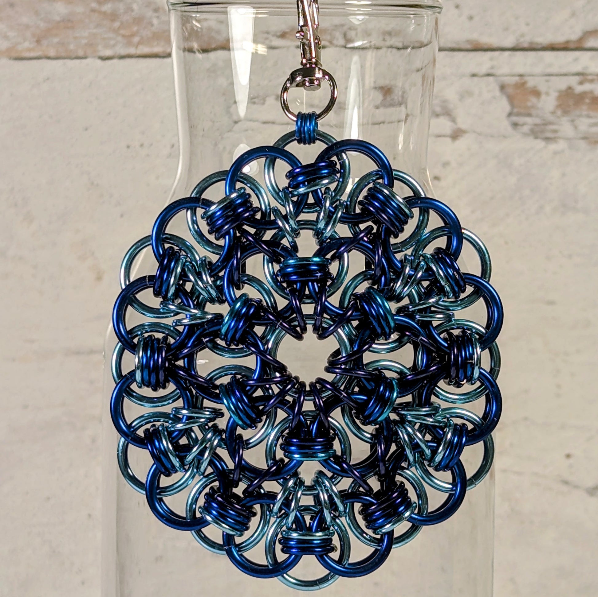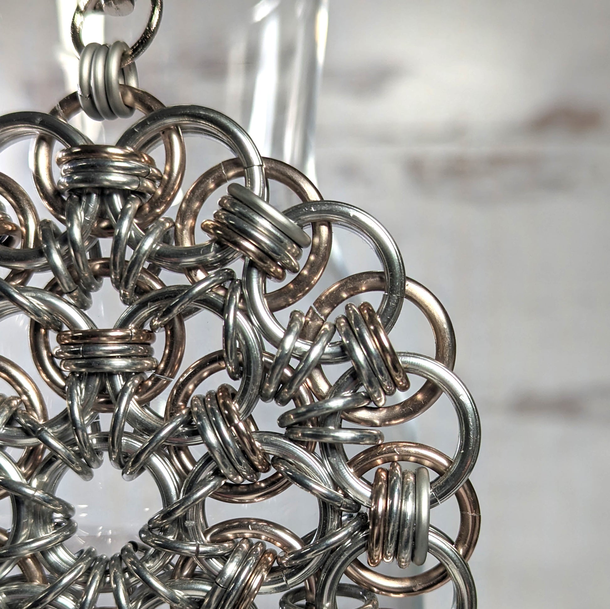 The Fugue fidget is the largest one I make, with a diameter of 3.5" (9cm), and is composed of a total of 164 individually-placed rings (54 large and 110 small). As you can imagine, this takes a while to make, but it's really lovely to fidget with when it's done!