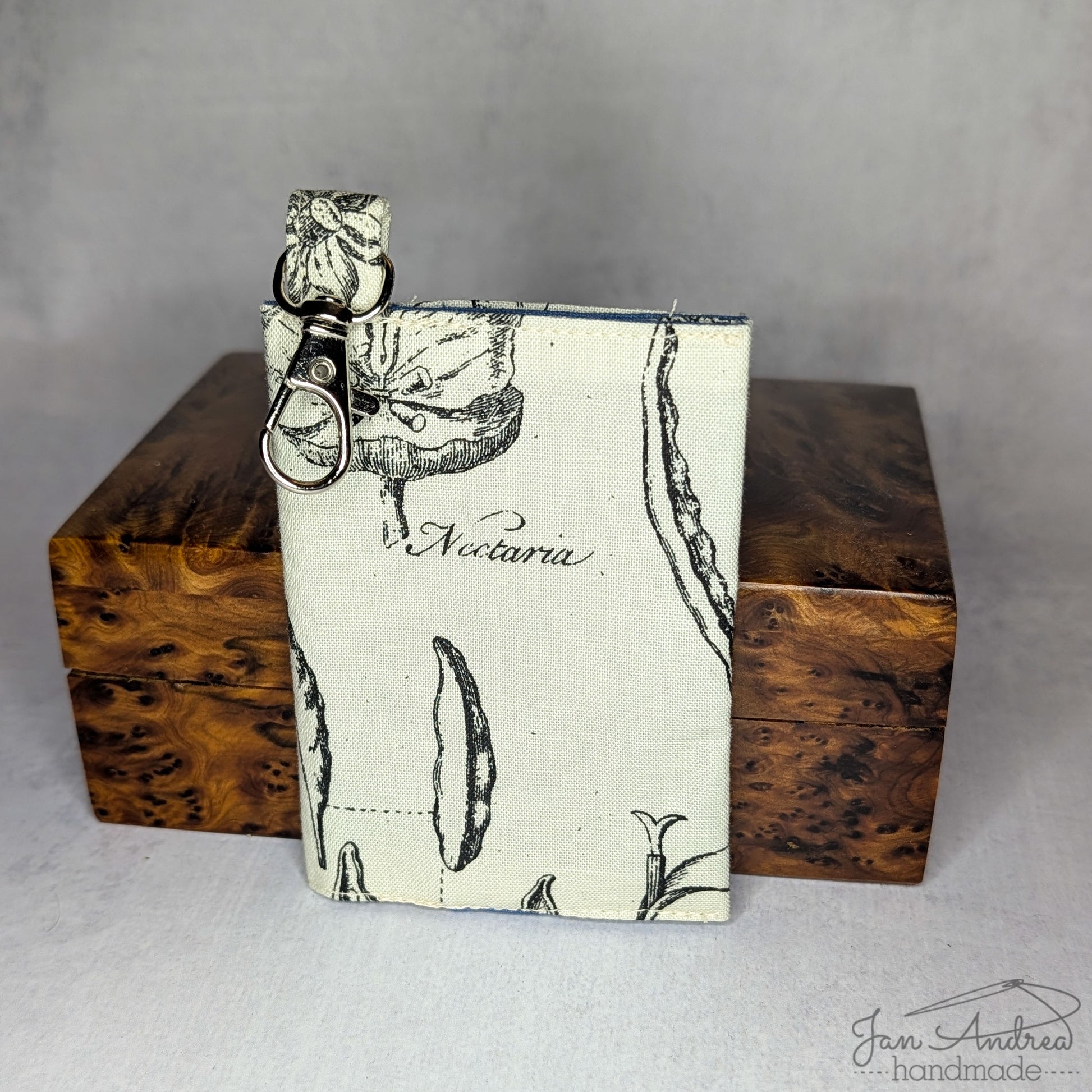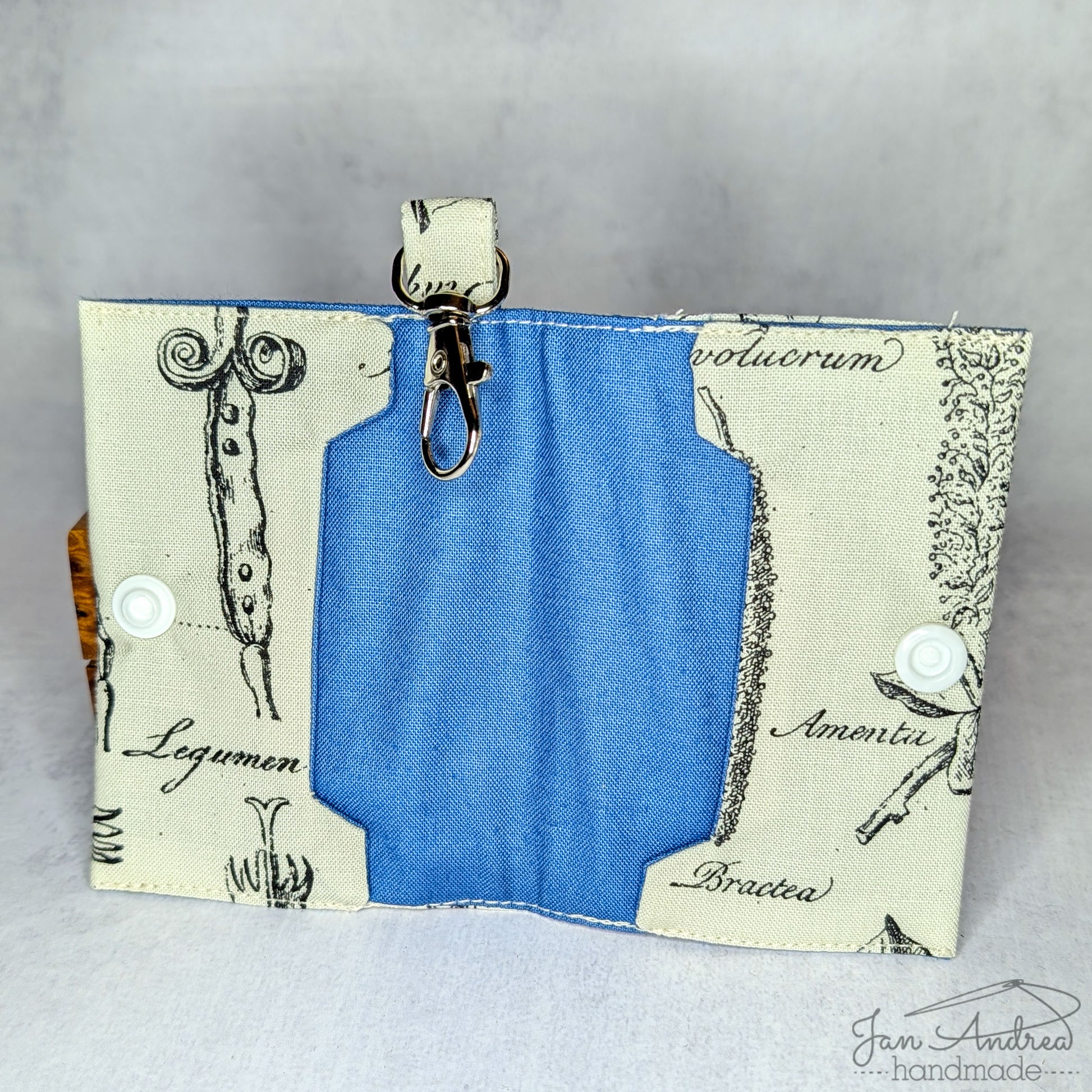 Outer fabric: vintage floral anatomy illustrations; inside: sky blue