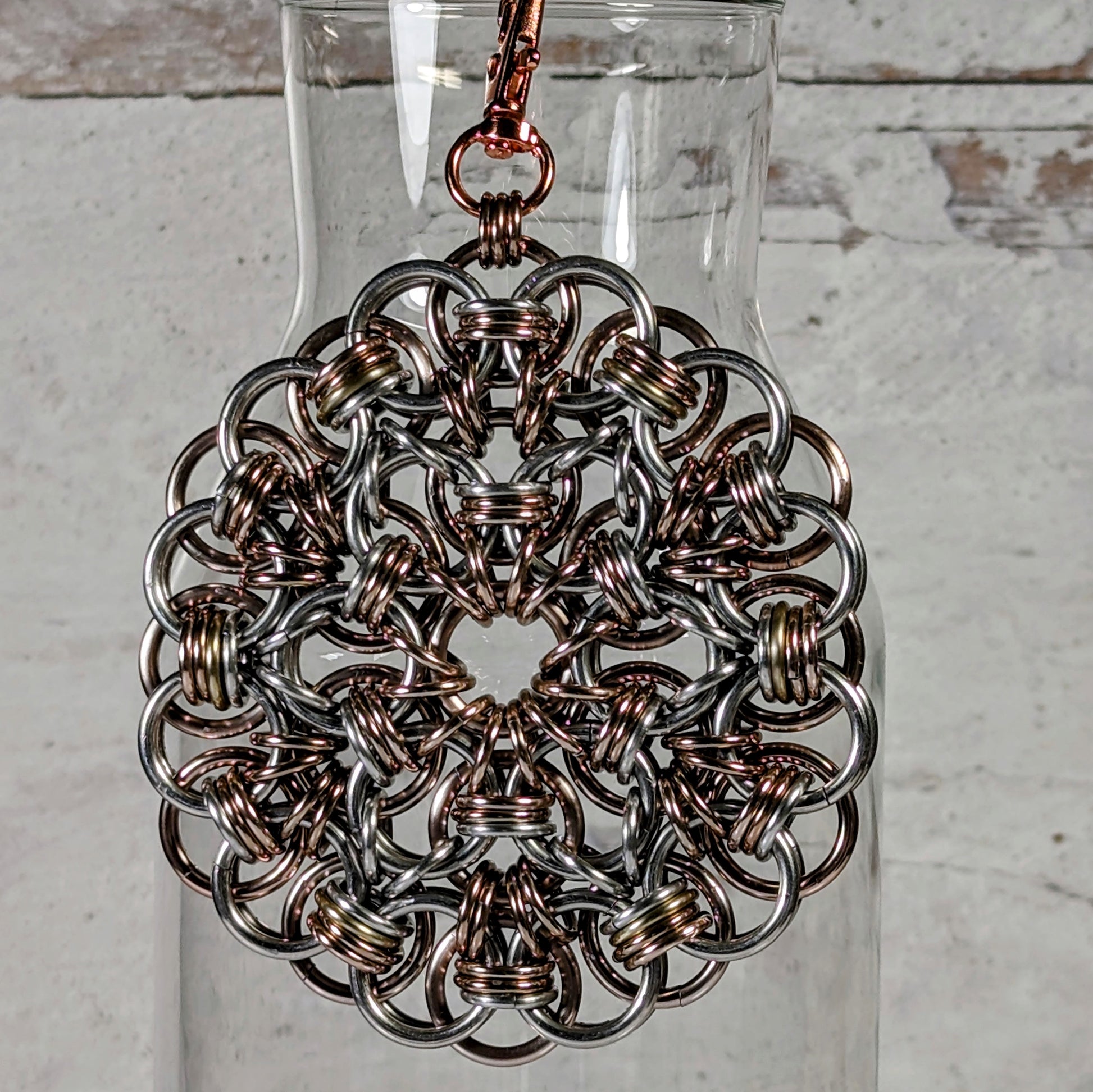 The Fugue fidget is the largest one I make, with a diameter of 3.5" (9cm), and is composed of a total of 164 individually-placed rings (54 large and 110 small). As you can imagine, this takes a while to make, but it's really lovely to fidget with when it's done!